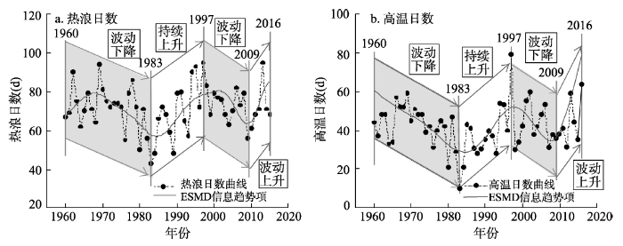 Tab. 2 The effect of heterogeneous data on extreme high temperature change in Xi'an and the tendency based on ESMD