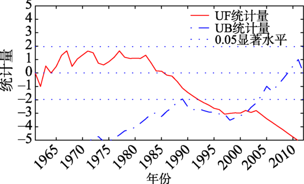 图5 冻土厚度Mann-Kendall检验图
