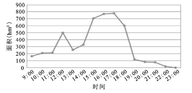 图4 工作日(9:00~23:00)人口分布集聚区的面积变化