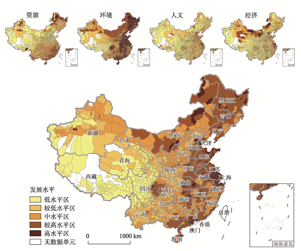 | 图2 中国乡村综合发展水平空间分布 注:此图根据国家测绘地理信息局标准地图(审图号:GS(2016)1569号)绘制而成,底图无修改。 |