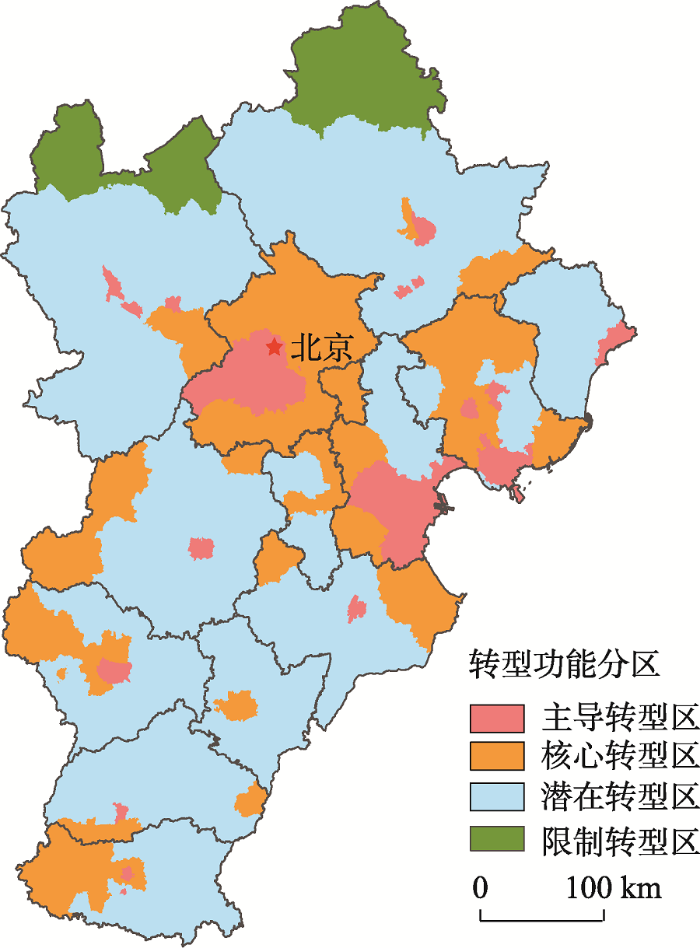 京津冀地区之间的发展差异大,近年来城乡转型迅速,缩小城乡差距和城乡融合发展是京津冀协同发展的基础[6]。依托“分区、分类”的研究思想,本文旨在通过定量城乡协调转型度进行城乡转型功能分区,在分区的基础上梳理京津冀乡村振兴模式,形成区域发展样板,为京津冀乡村振兴提供理论参考,并为我国其他地区梳理乡村振兴模式提供研究思路和技术支撑。