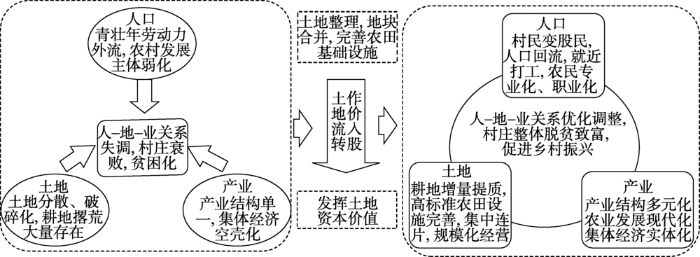 ... 扶贫开发中的土地整治工程不仅涵盖以往国土开发与整治的概念范畴,而且关注与土地整治相关的社会经济关系的调整[31 ] ,将土地整理与土地政策创新、机制变革相结合,促进农村人力、资本、土地等多元要素整合,加速农村转型发展和乡村振兴.土地政策对可持续增长、良好治理及城乡居民的生活福利及获取经济机会至关重要,土地问题上任何微小的改善都会显著影响穷人[32 ] ,开展土地整治的同时用活土地政策,才能充分发挥土地整治促进经济增长,消除贫困的作用.在贫困地区开展土地整治的过程中,一方面将土地整治与城乡建设用地增减挂钩相结合,通过补充耕地指标异地调剂,为农村地区积累扶贫开发资金,解决贫困地区发展资金短缺的问题.另一方面,在土地整治的基础上,鼓励实施土地使用权流转或作价入股,将土地集中到更具备生产能力的农民手中,解放农村剩余劳动力,实现土地要素与其他生产要素的合理匹配,提高土地利用效率,破解区域发展中的人、地、资本等要素配置的结构性矛盾,满足区域协调发展的多元目标需求[33 ] .土地流转为农村专业合作组织及龙头企业的发展创造了条件,带动了农村地区产业结构的升级[34 ] ,同时吸引部分农村青壮年劳动力回乡创业,缓解农村空心化,有利于培育贫困地区的农村新型发展主体,激发农村内生发展动力.更有一些贫困地区通过空心村整治,实施组织整合、产业整合和空间整合,调整不合理的土地利用和空间组织关系,促进了村庄居住集中化、产业集聚化、基层组织社区化,加快了新农村建设和乡村转型发展. ...