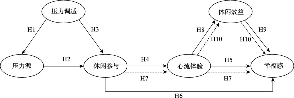 H10:休闲效益在心流体验对幸福感之间具有中介效应。