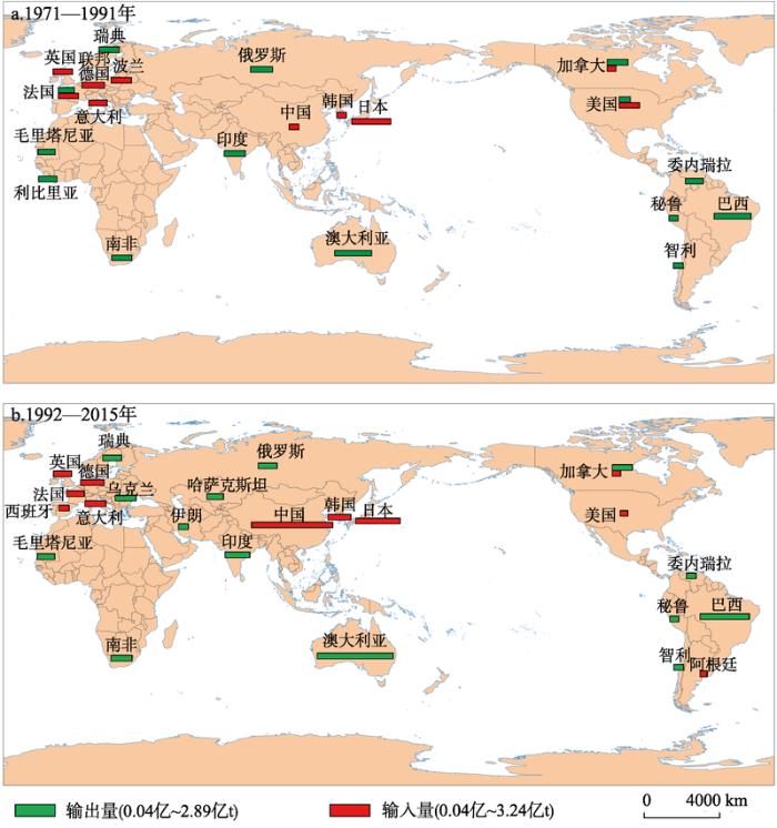 本文研究了1971—2015年世界铁矿石供需与流动格局的时空变化,结果显示:① 世界铁矿石年产量期末比期初增加了12.26亿t,年均增长2.17%;1992年以前,欧洲曾是世界铁矿石的消费重心,但随后亚洲后来居上。② 研究期内世界铁矿石输出量年均增长达3.7%,大洋洲和南美洲成为铁矿石的主要输出地,2015年占世界的比重分别达53.73%和26.23%;本世纪以来铁矿石输入量最大的是中国、日本和韩国,2015年分别占世界总量的65.07%、8.94%和5%。③ 基于“场”理论,采用位势、“源”、“汇”、迹线等概念审视全球铁矿石流场的基本特征和流场成因,发现世界铁矿石流动的“位势”北半球较低,而南半球较高;亚洲、欧洲是主要的汇流场,大洋洲、南美洲是主要的源流场。本文研究揭示了近半个世纪以来世界铁矿石资源的流动状态及其演变过程,对于我国科学地制定产业政策具有重要价值。