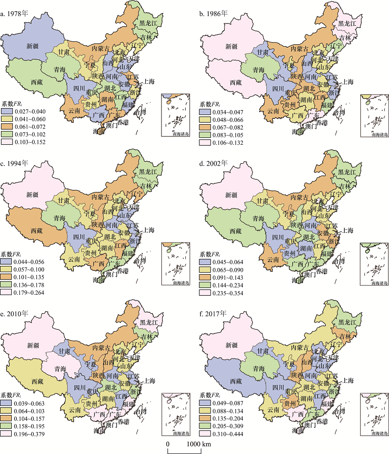Fig. 1 Specialization coefficient (FRi) of provinces in China, 1978-2017