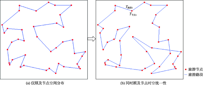 ... 随着中国自助旅游市场规模的快速扩张,传统旅游线路设计思路难以满足游客自身的灵活需求以及线路设计的时空统一性,这就要求旅游服务部门能够提供更为便捷、合理、灵活的行程规划方案.为了应对游客对游览目的地了解不足,以及对实际景点游玩时间与游览顺序认知上的模糊[1 ,2 ,3 ,4 ,5 ] ,旅游行程自动规划系统应运而生,一方面满足了游客对当地旅游景点、道路交通等旅游相关信息的信息采集与梳理;另一方面通过交互式的行程规划形式,尽可能的获取游客需求,有针对性地提供相适应的旅游行程线路安排.已有相关研究与应用主要关注于线路的空间设计[6 ,7 ,8 ] ,对其影响因素的探究局限于景点满意度、成本控制、景观路线设计、步行舒适度等方面,缺乏对旅游行程中空间顺序、日程时间、个体需求等因素的协同考虑.此外,已有研究往往将旅游行程规划归结为线路安排问题(空间问题)[9 ,10 ] ,而旅游出行的本质是对游客行为的时空统一安排,从时间地理学的视角来看,更倾向于将行程设计理解为时空耦合最优化问题,由于每日时间守恒(24 h),交通时间、游玩时间、吃住时间等都可以被视作不同的时间段落,行程规划问题可以归结为指定出行总时间后对各类游览事件节点进行时空合理安排的过程[11 ,12 ,13 ,14 ] . ...
