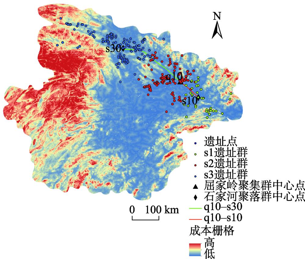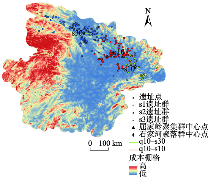 本文以长江中游地区新石器晚期聚落遗址为研究对象,通过对遗址建立分布模型,在分布模型系数的约束下生成成本栅格数据,最终模拟生成聚落迁移的最优路径,得出以下结论: