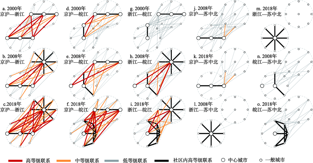 图5 长三角城市群铁路网络社区间联系类型变化 |
