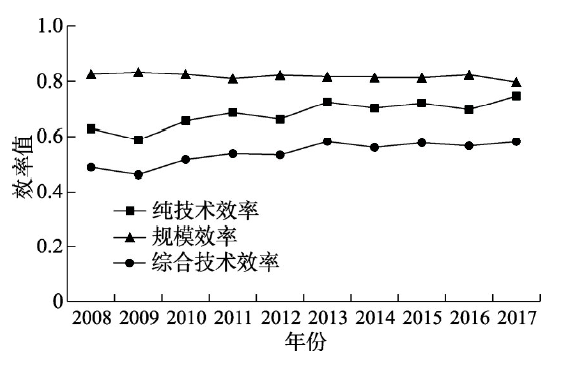 Fig. 2 Dynamics of comprehensive technical efficiency and its decomposition of container terminals |