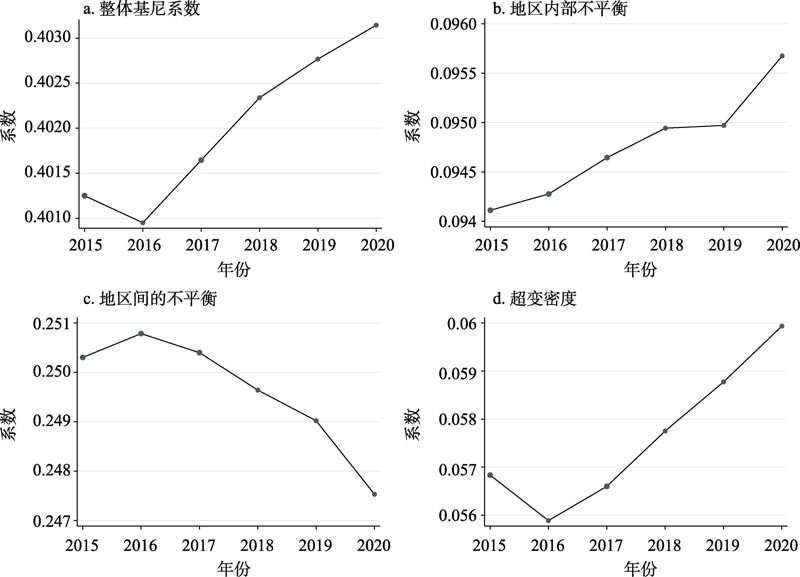 2015—2020年中国基尼系数及其分解项变化趋势