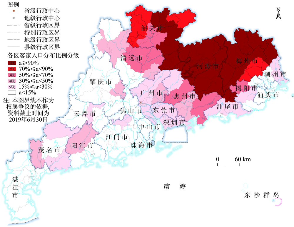Fig. 1 Classification of the proportion of Hakka population of Guangdong in 2012 |