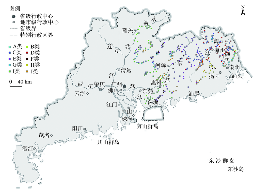 图2 广东主要客住区传统建筑类型的地理分布 |