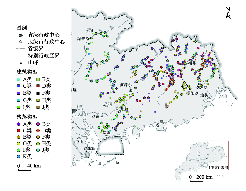 图5 广东主要客住区建筑类型与聚落类型的地理分布比较 注:基于国家自然资源部地图技术审查中心标准地图服务网站的标准地图(GS(2019)3333号)绘制,底图无修改。 |