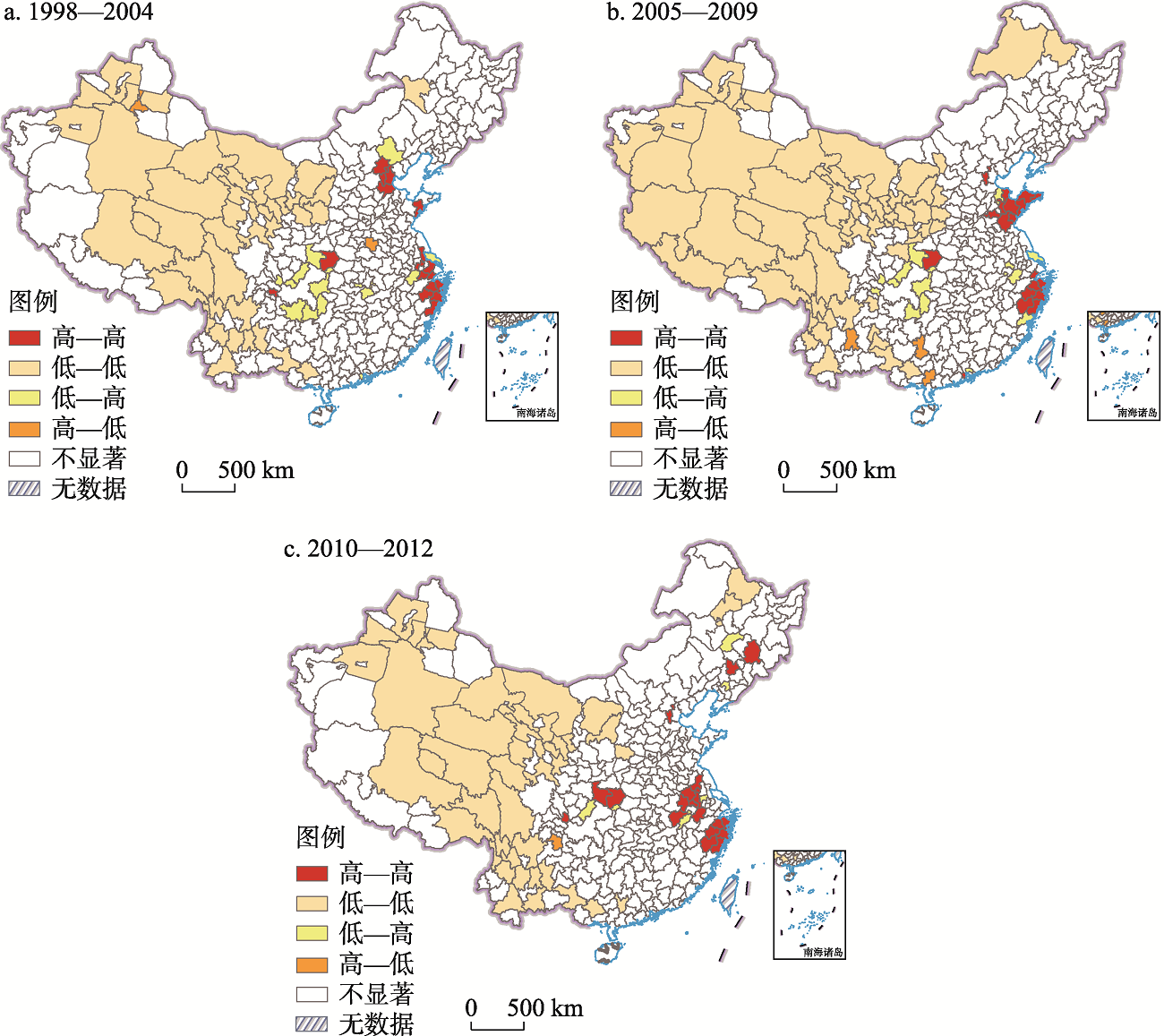 Fig. 3 Spatiotemporal agglomeration of new firms in automobile manufacturing industry |