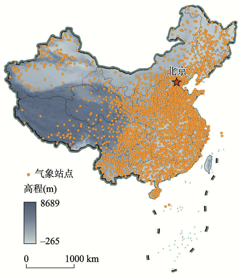 图1 国家气象站点分布 注:此图基于国家自然资源部标准地图服务系统的标准地图(审图号:GS(2019)1697号)绘制,底图无修改。 |