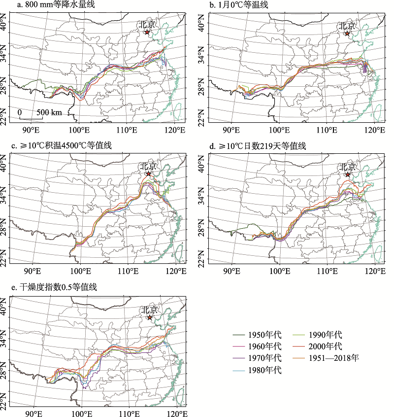 图5 划界气象指标年代际均值线变化 注:此图基于国家自然资源部标准地图服务系统的标准地图(审图号:GS(2019)1697号)绘制,底图无修改。 |