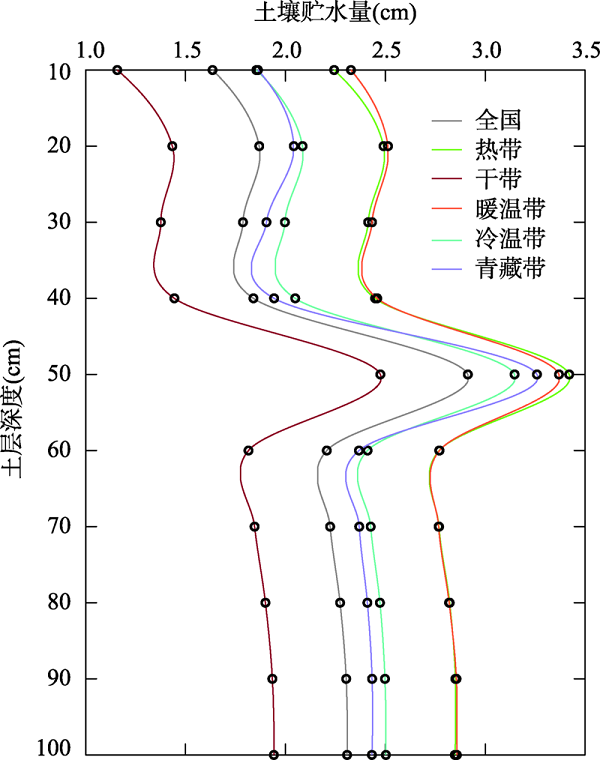 | 图6 不同气候带土壤贮水量的垂向变化 |