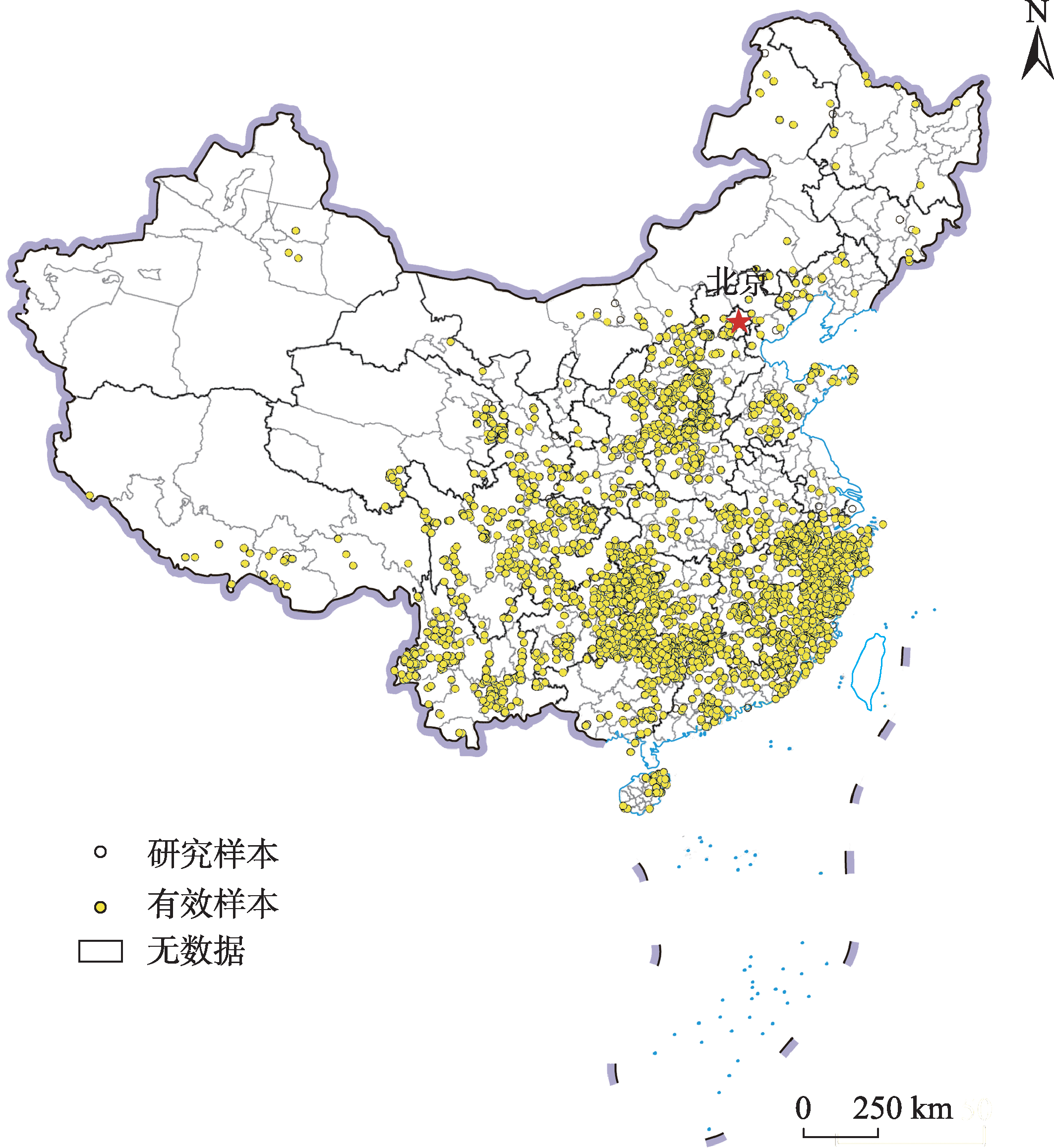 | 图1 研究样本空间分布 注:该图基于自然资源部地图技术审查中心标准地图(审图号:GS(2019)1697号)绘制,底图边界无修改。 |