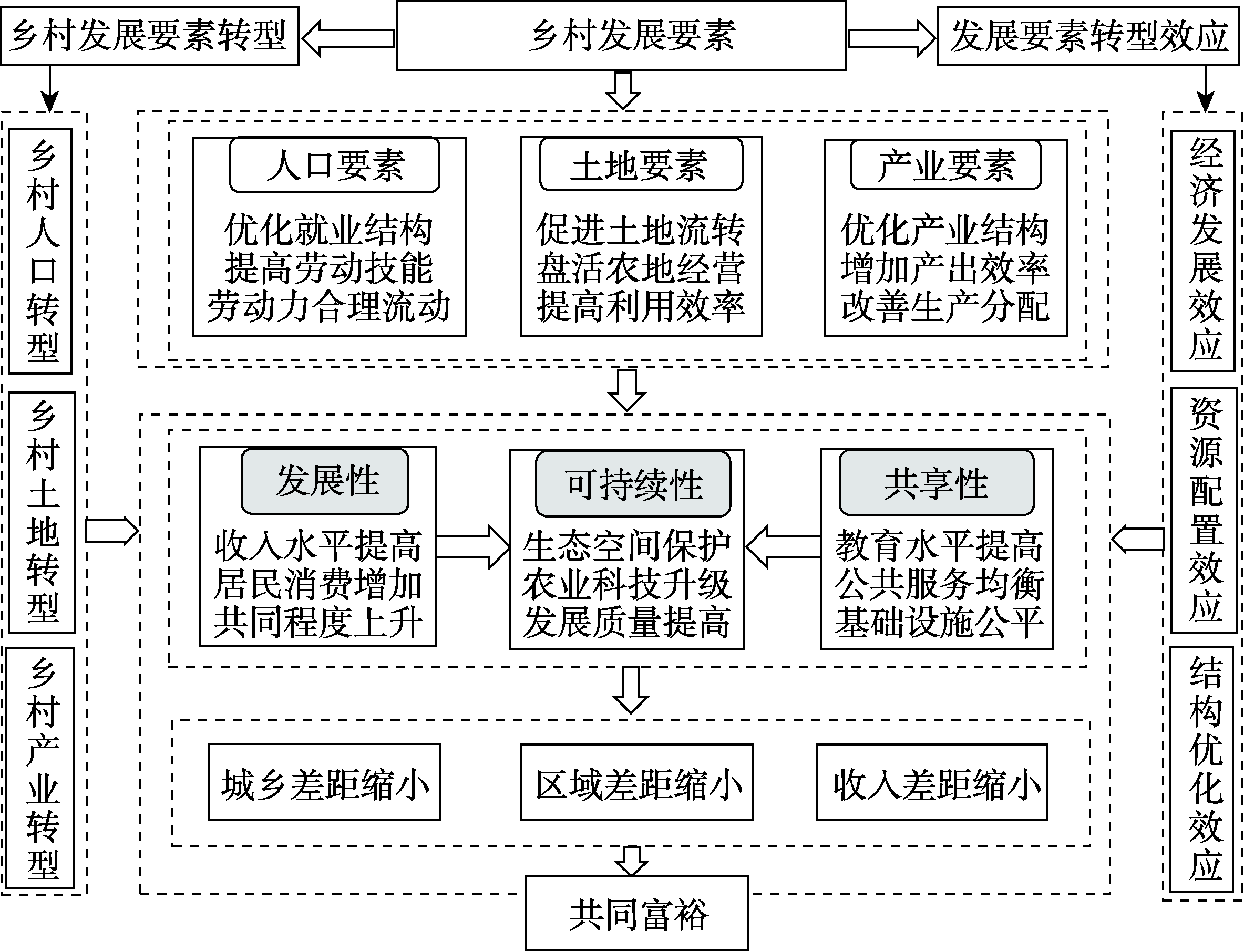 | 图1 乡村发展要素转型对共同富裕的影响理论框架 |