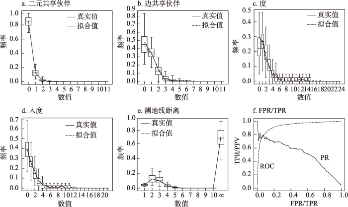 将城市属性和外生网络变量引入模型1,作为基准模型。模型2~模型4将网络内生结构变量分别加入,以研究长三角城市技术合作网络演化的基础结构动力。模型5~模型7将自相关延续性、创新性和延迟互惠性分别作为时间依赖变量加入模型,观察城市技术合作网络中的时间依赖效应。模型8选取模型1~模型7中显著性较高且对城市技术合作网络具有正向影响的自变量进行合并回归,作为最终模型并进行拟合优度检验(表3),检验结果如图4(见第98页)所示,其中图4f表示受试者工作特征曲线(Receiver Operation Characteristics,ROC)和精确率-召回率(Precision-Recall,PR)曲线的轨迹。检验结果表明,模型与实际网络的相关指标较为吻合,真实值曲线与拟合值曲线重合度较高,ROC曲线接近于左上角,模型拟合效果较佳(图4见第98页)[39]。模型1~模型8均在99%的置信度下达到收敛,并且回归系数在各模型之间呈现良好的稳定性特征。
