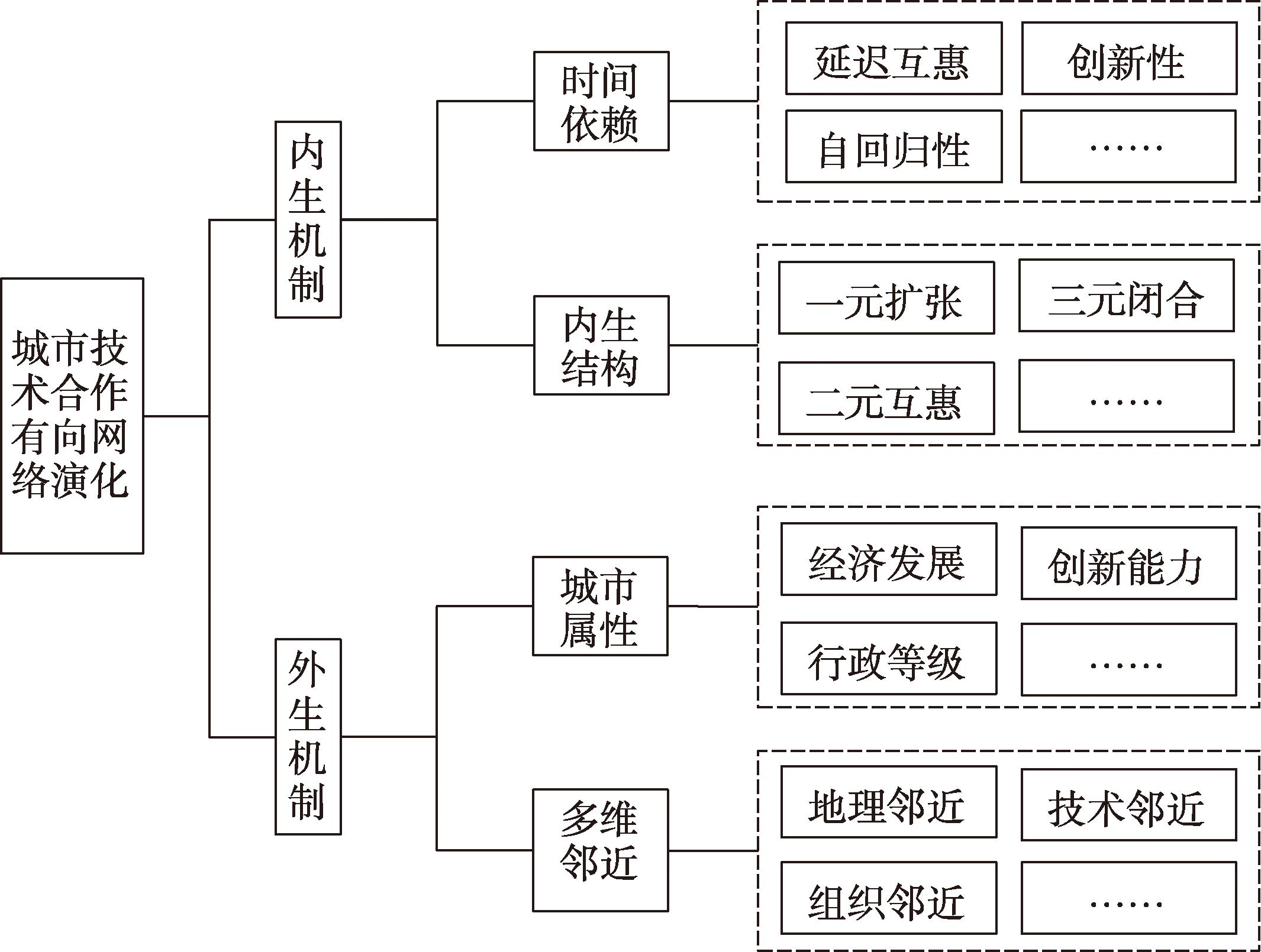 | Fig. 1 The framework of the evolution mechanism of the directed network of urban technical cooperation |